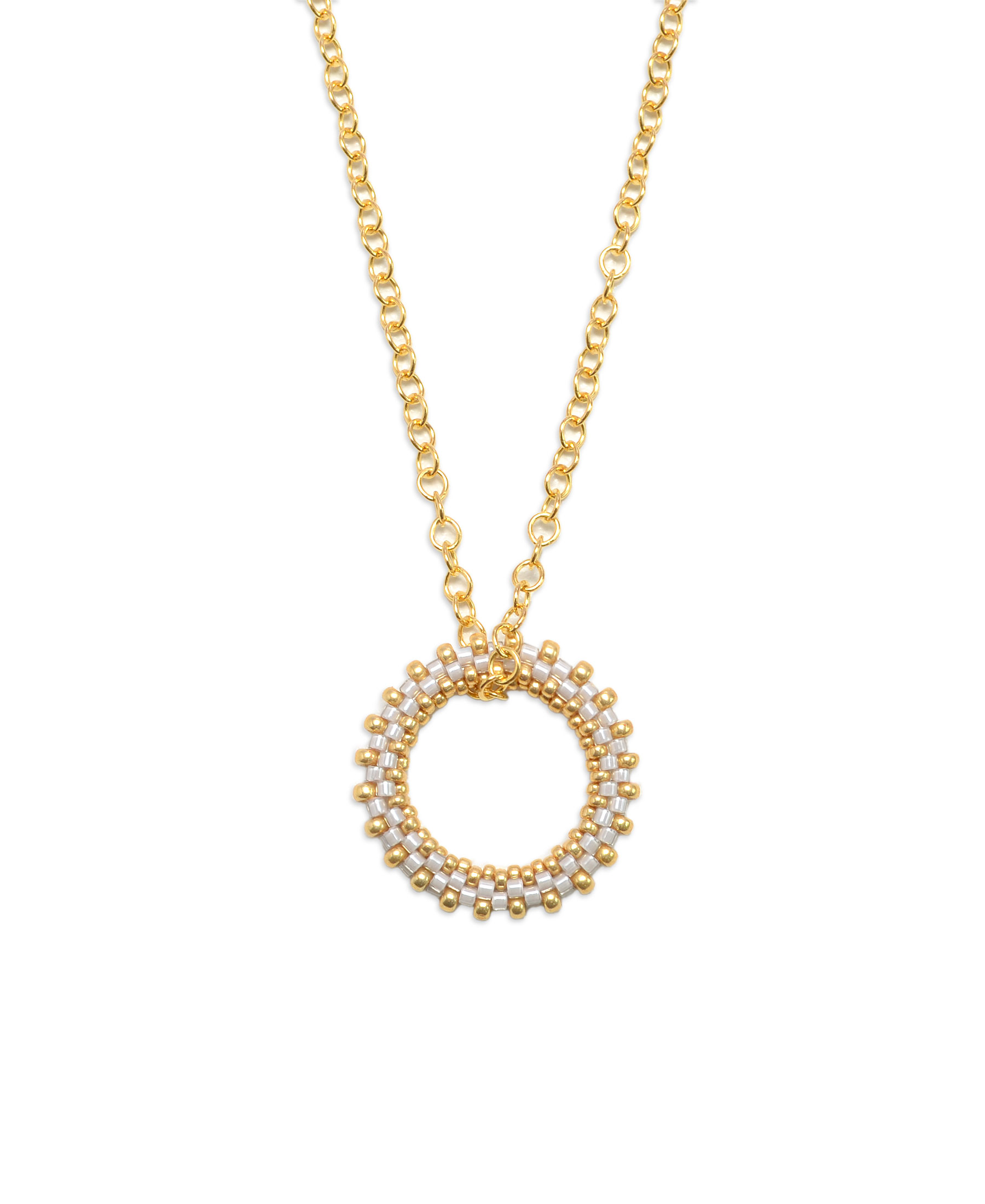 Der Loop ist aus hochwertigen Delica-Perlen gefertigt und hängt an einer filigranen Ankerkette. Diese Halskette ist ein vielseitiges Schmuckstück, das sowohl zum edlen Understatement-Look als auch in Kombination mit anderen Ketten zu einem modernen Hippie-Look passt.