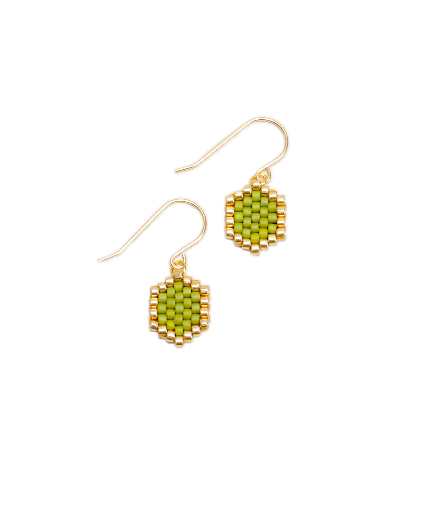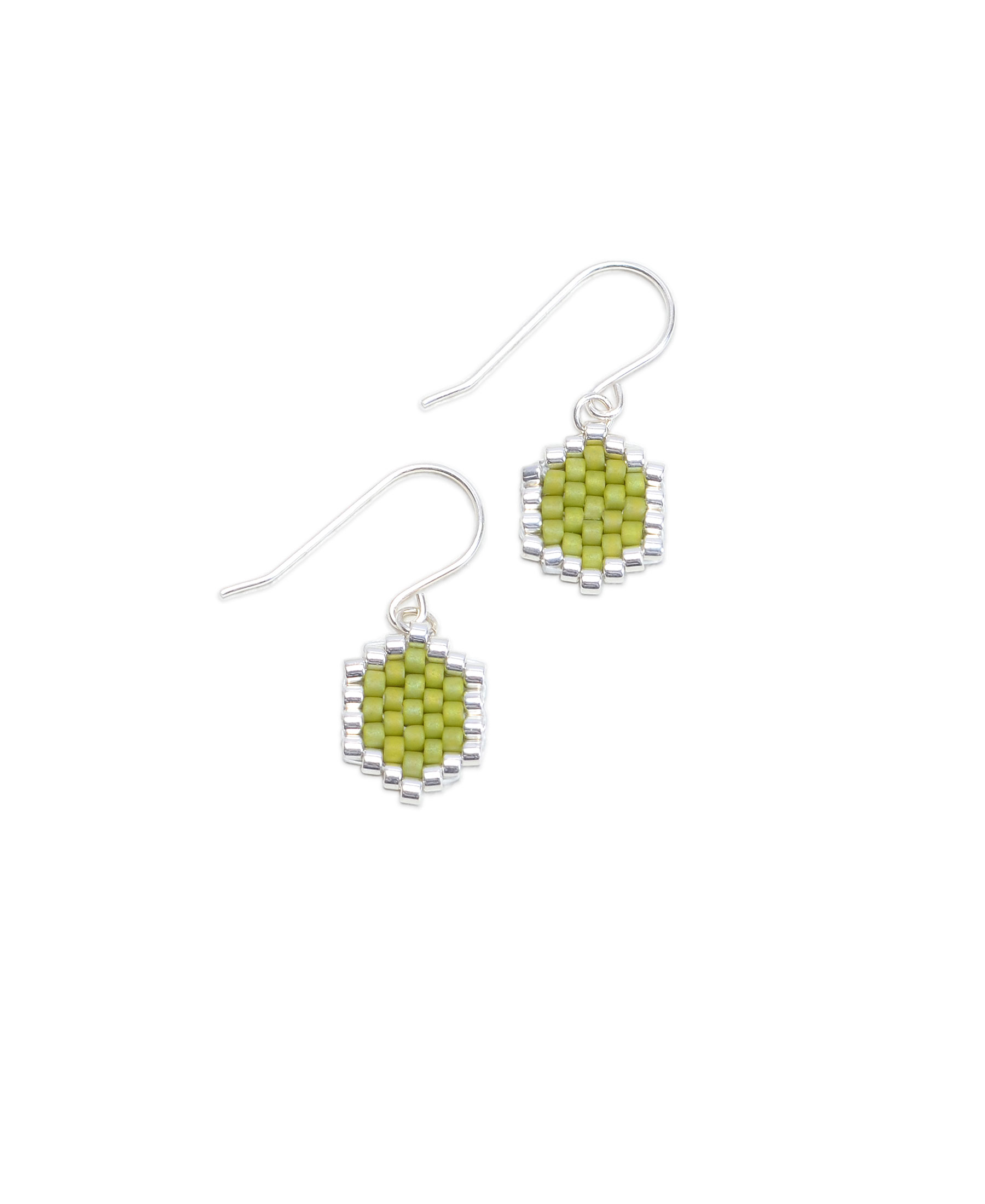 Mini-Waben Ohrringe aus grünen Perlen.