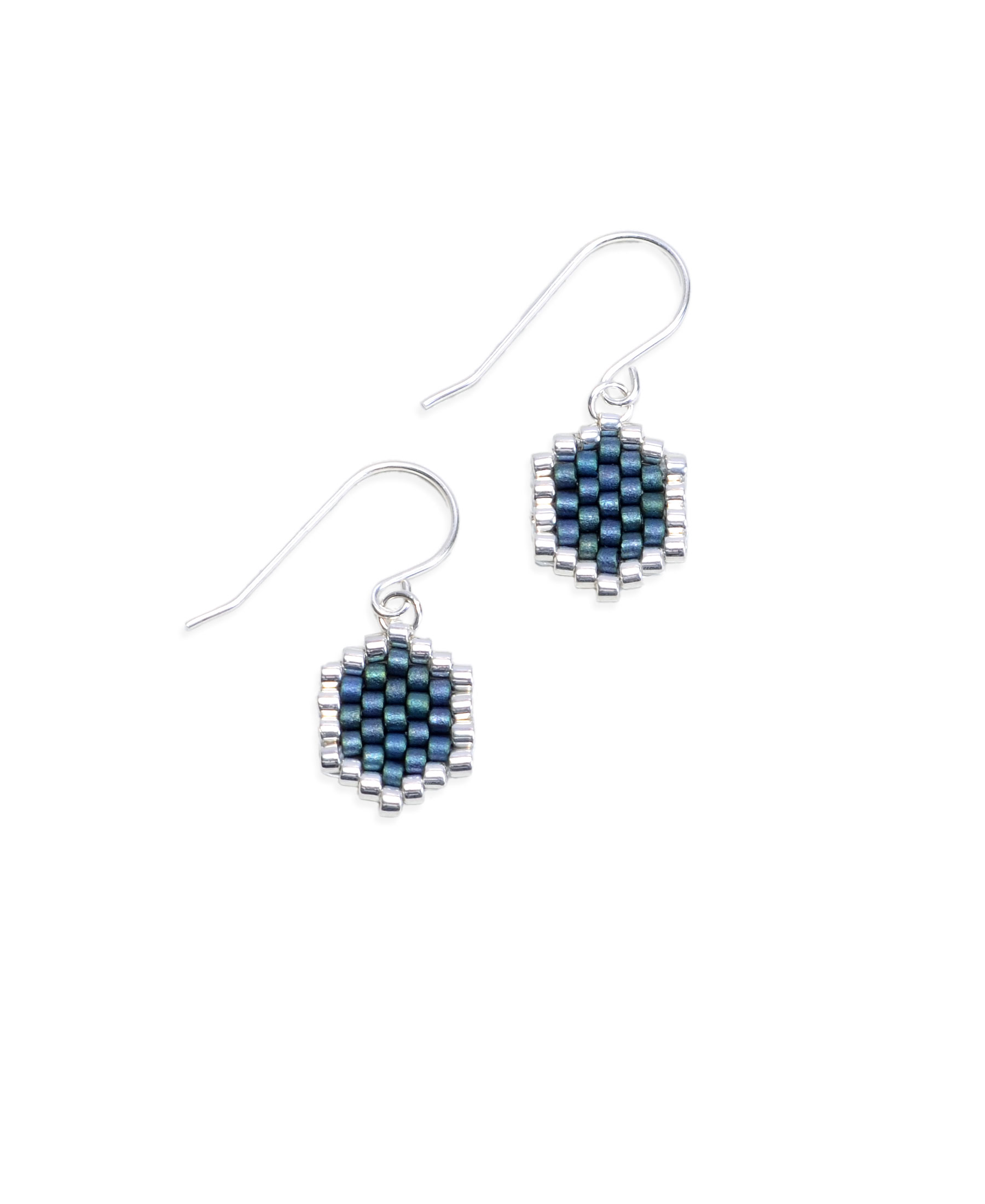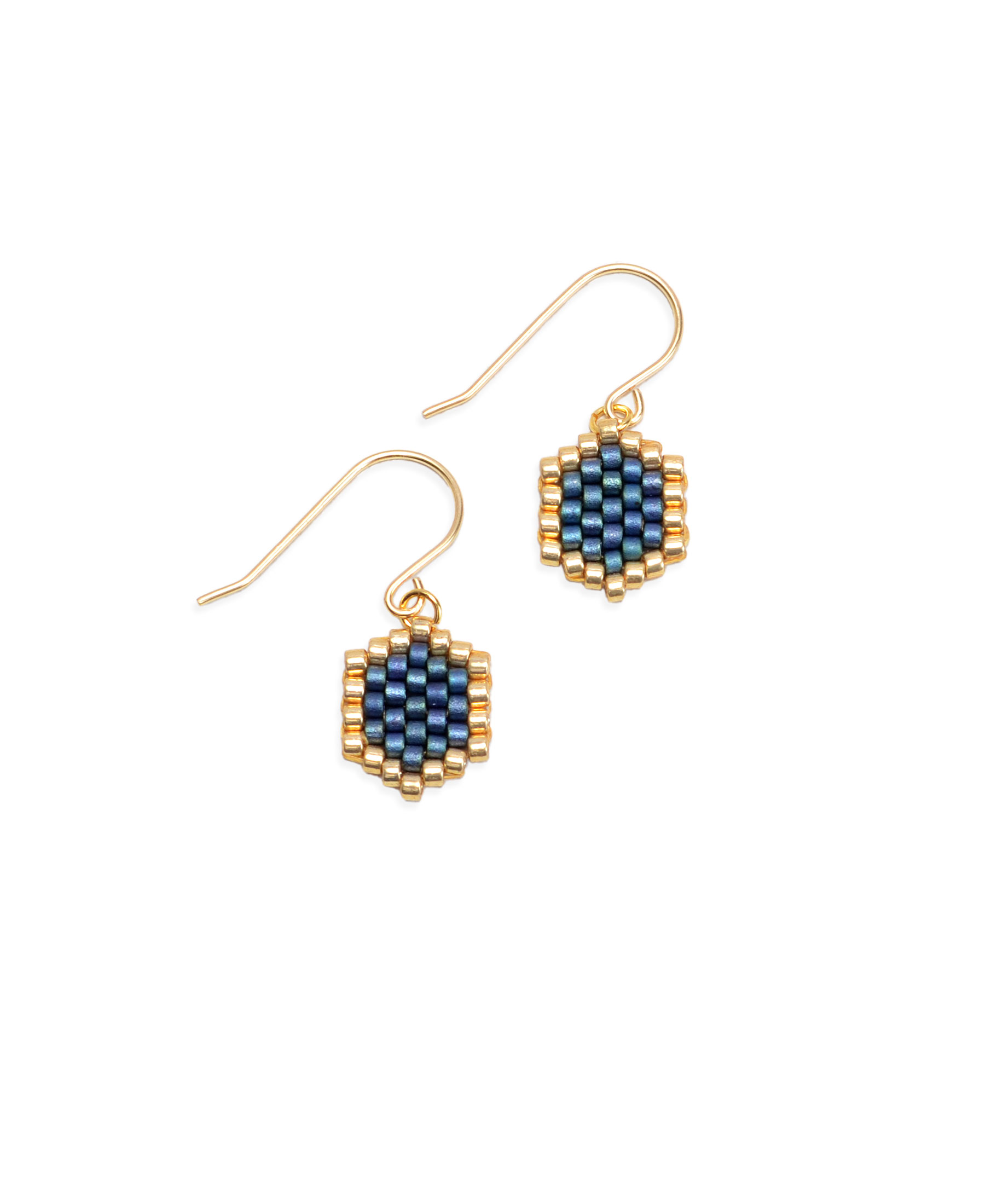 Mini-Waben Ohrringe aus dunkelblauen Perlen.