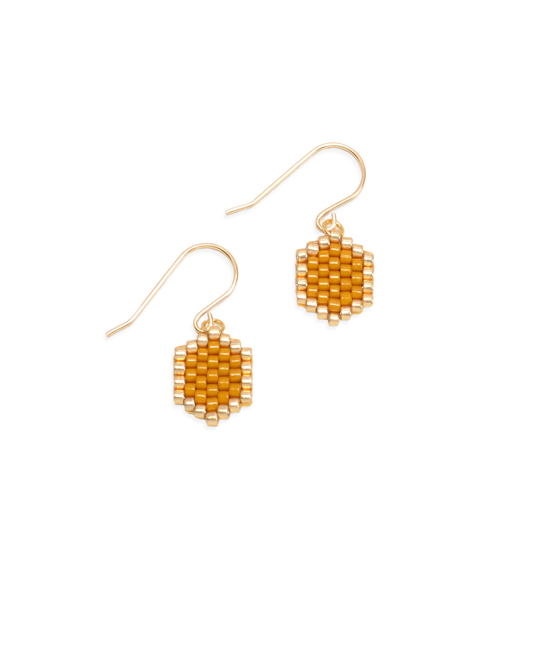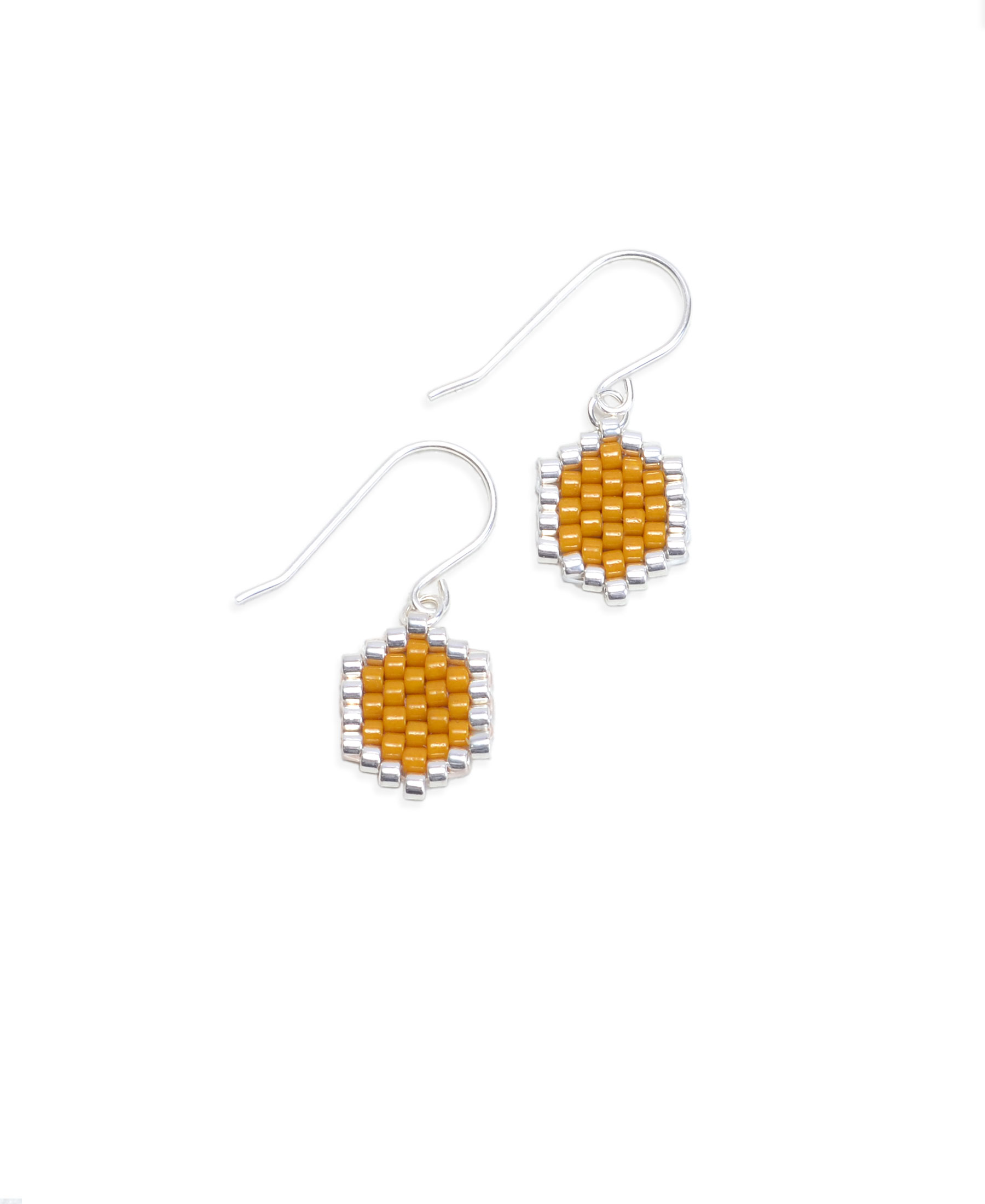 Mini-Waben Ohrringe aus senffarbenen Perlen.