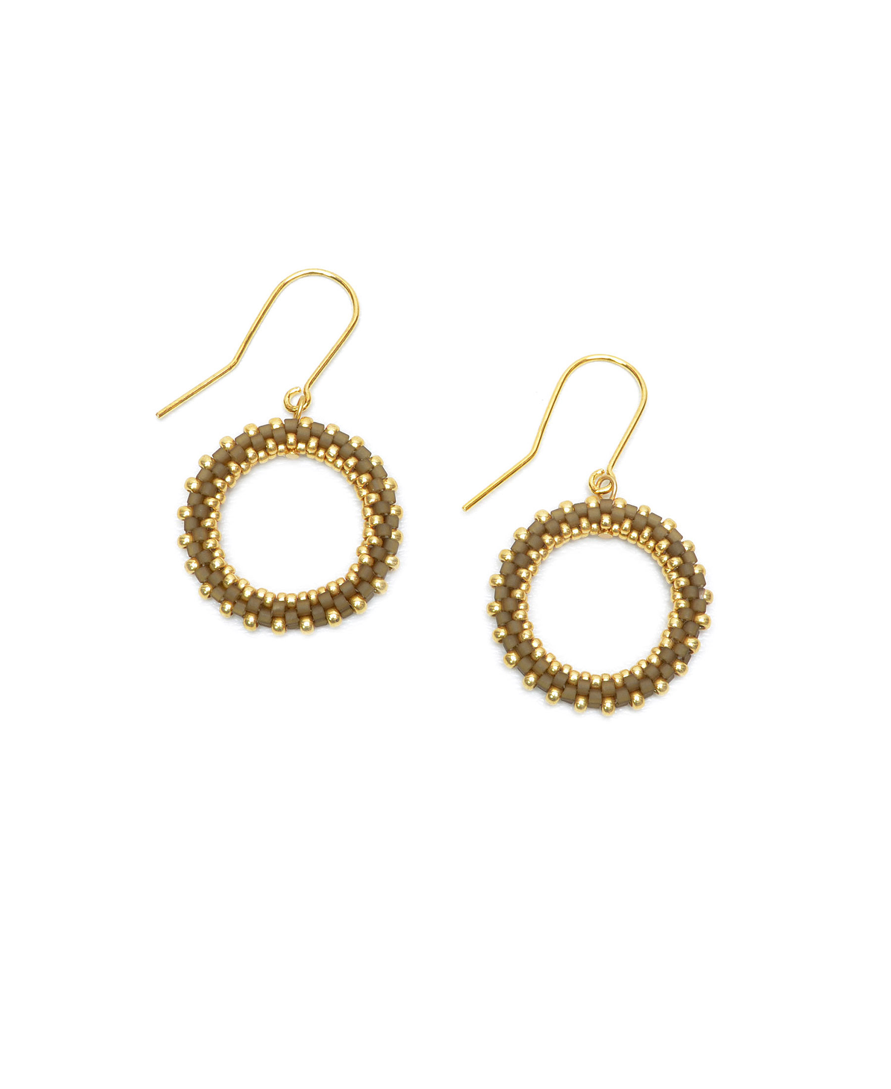 Der Loop ist aus hochwertigen Delica-Perlen gefertigt und hängt an einem 24K vergoldeten Ohrhaken. Schlicht und elegant.